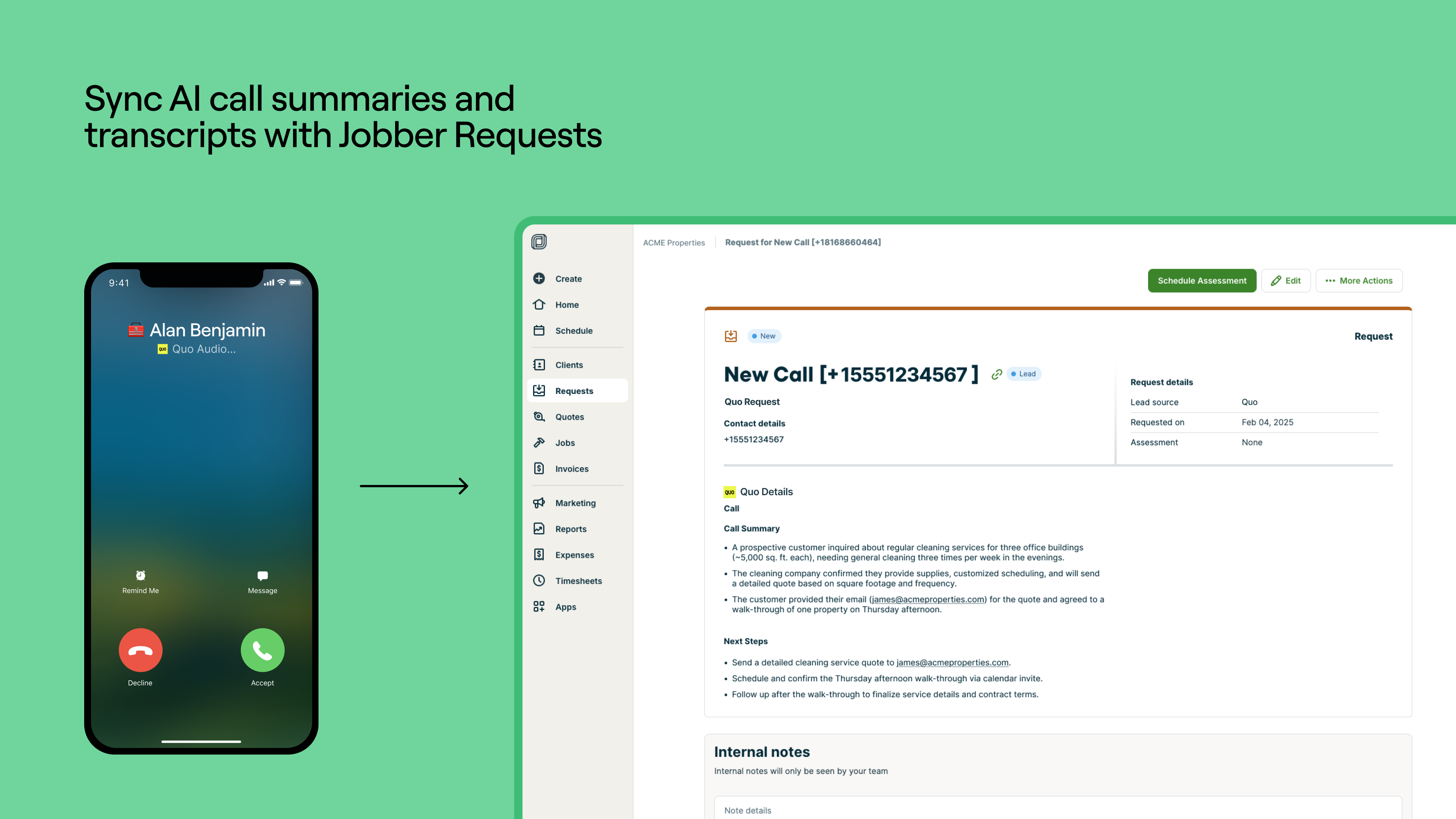 Sync AI-powered call summaries and transcripts with Jobber