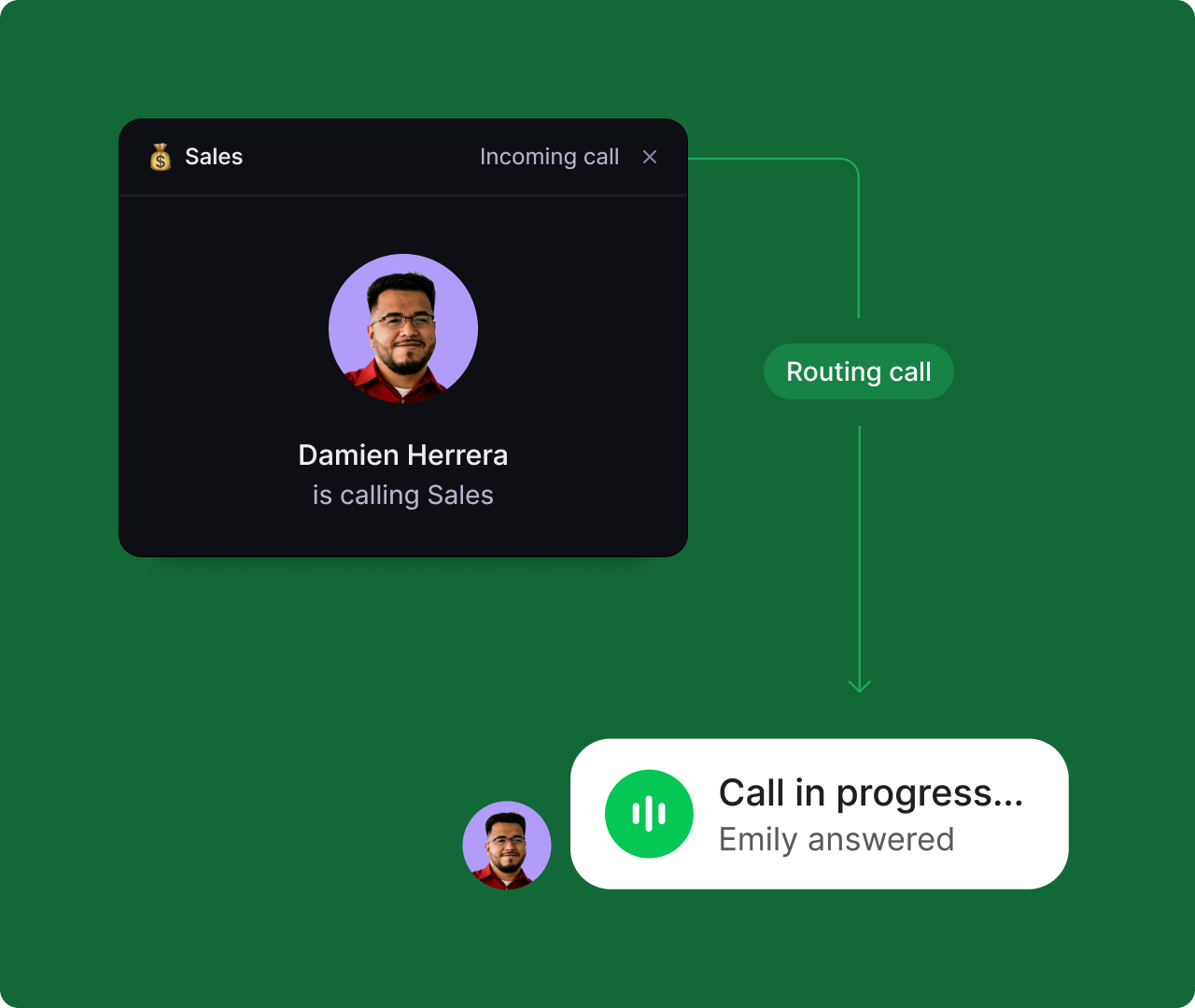 Send calls to the right rep based on availability, business hours, or expertise so prospects aren’t bounced around