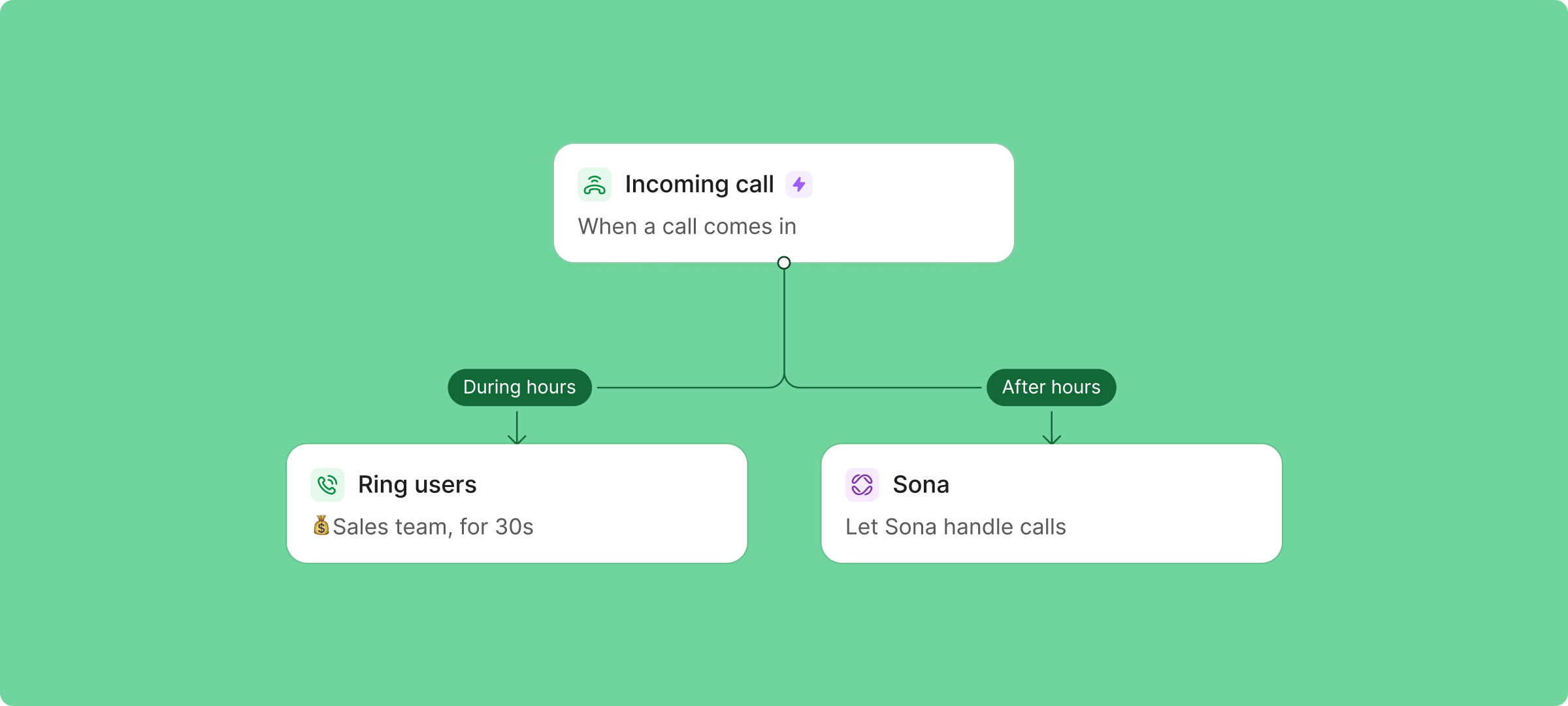 Drag-and-drop flows for new leads, existing customers, and partners so each call lands with the team every time.